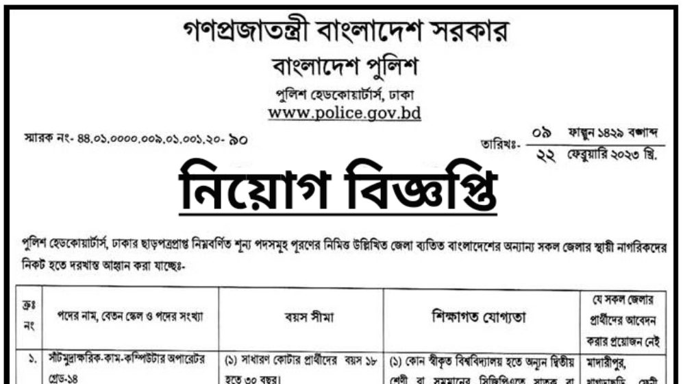 বাংলাদেশ পুলিশ নিয়োগ বিজ্ঞপ্তি ২০২৪
