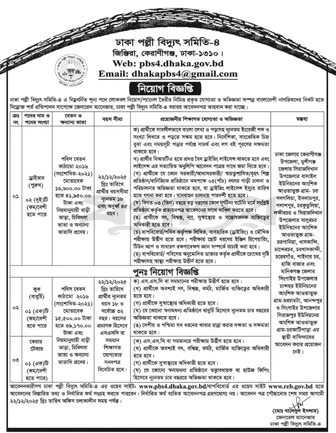 ঢাকা পল্লী বিদ্যুৎ সমিতি-৪ নিয়োগ বিজ্ঞপ্তি ২০২৫