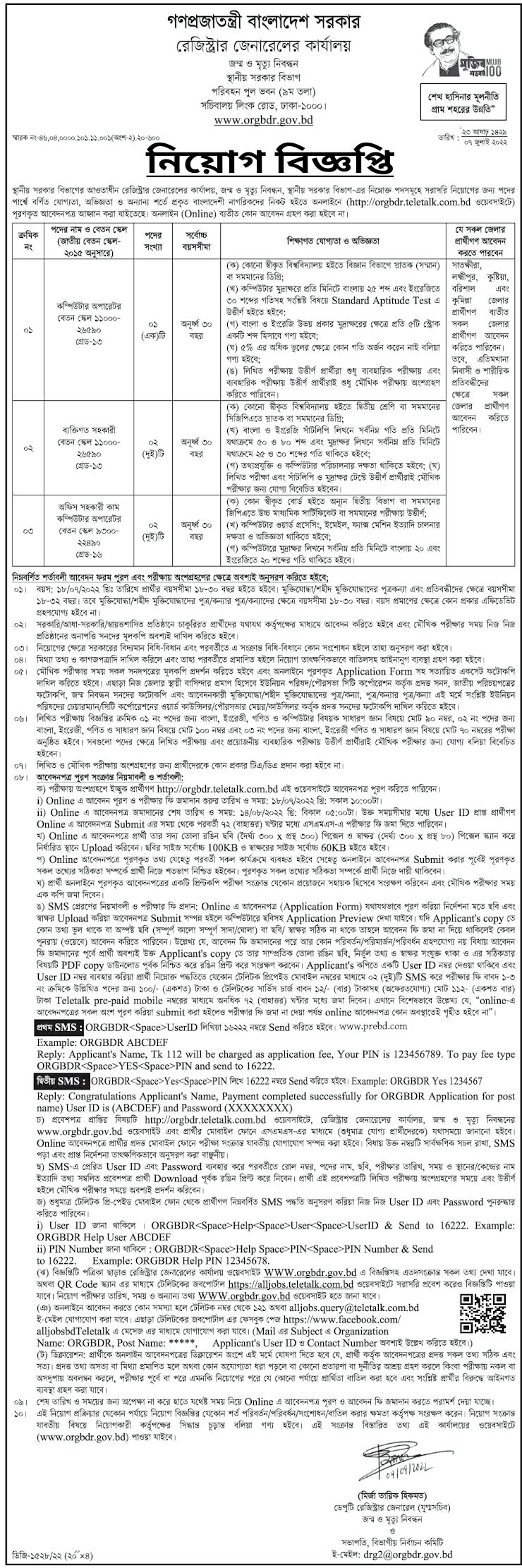 রেজিস্ট্রার জেনারেলের কার্যালয় নিয়োগ ২০২২
