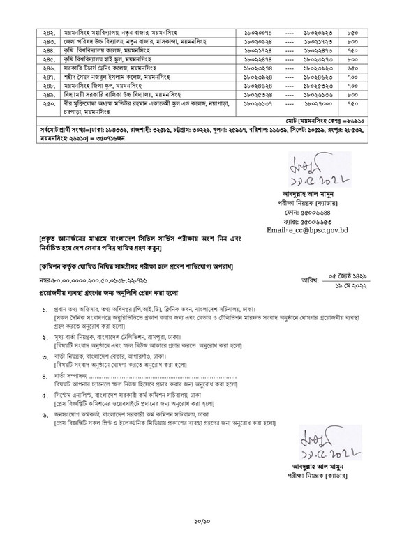 ৪৪ তম বিসিএস পরীক্ষার সিটপ্ল্যান আসন বিন্যাস ২০২২