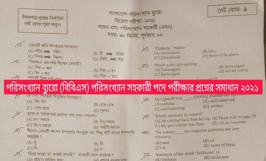 BBS Statistical Assistant Exam Question Solution 2021 | পরিসংখ্যান ব্যুরো (বিবিএস) পরিসংখ্যান সহকারী পদে পরীক্ষার প্রশ্নের সমাধান ২০২১ Interested candidates are waiting after the exam when their Bangladesh Bureau of Statistics (BBS) Question Solution 2021 will be published by the educational website. As students search their related question solution so we also give the question solution post. My dear if you want to get your question and answer then you have to enter our site as we will try to give the 100% right solution.