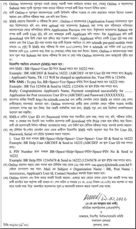 - আবেদন প্রক্রিয়াঃ www.br.teletalk.com.bd