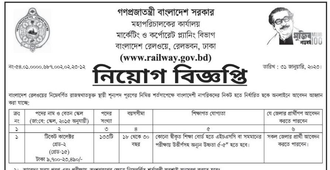 Bangladesh Railway Ticket Collector Job Circular 2023