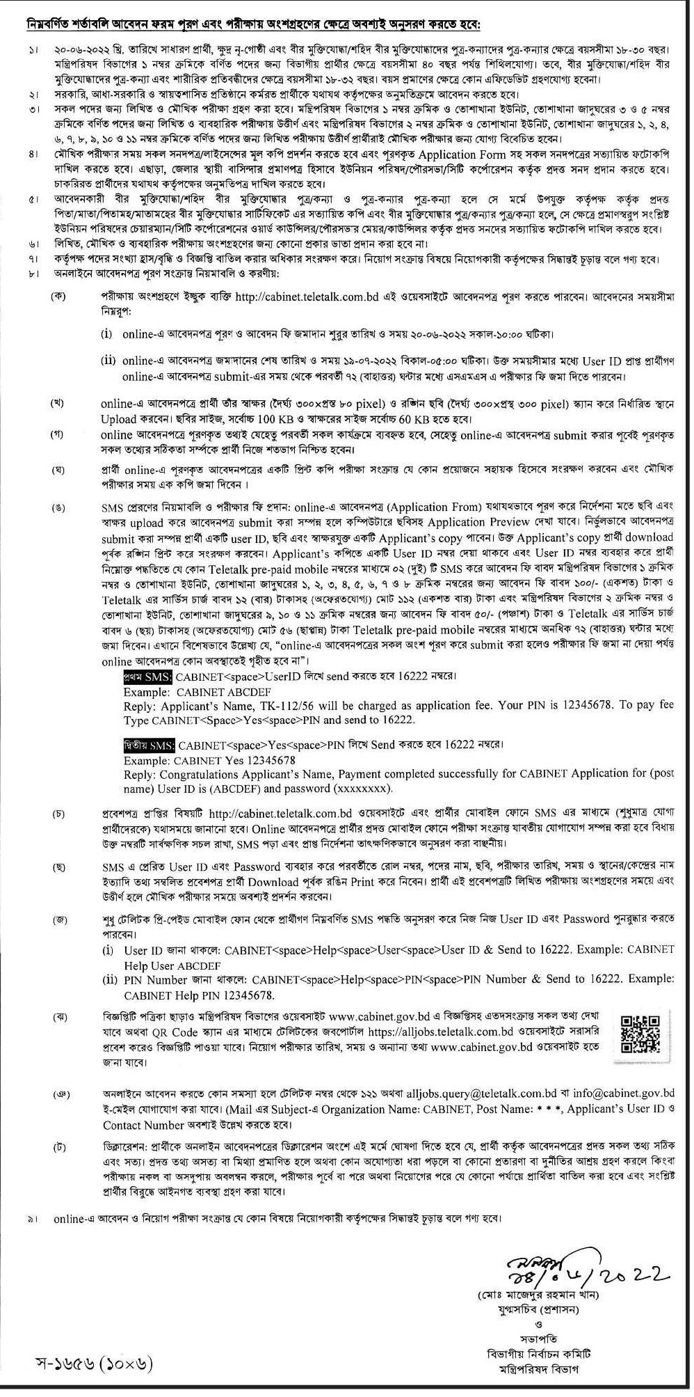- আবেদন প্রক্রিয়াঃ http://cabinet.teletalk.com.bd