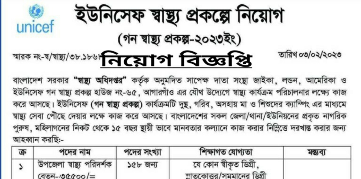 Read More »ইউনিসেফ স্বাস্থ্য প্রকল্পে নিয়োগ বিজ্ঞপ্তি ২০২৪ | UNICEF Health Project Job Circular