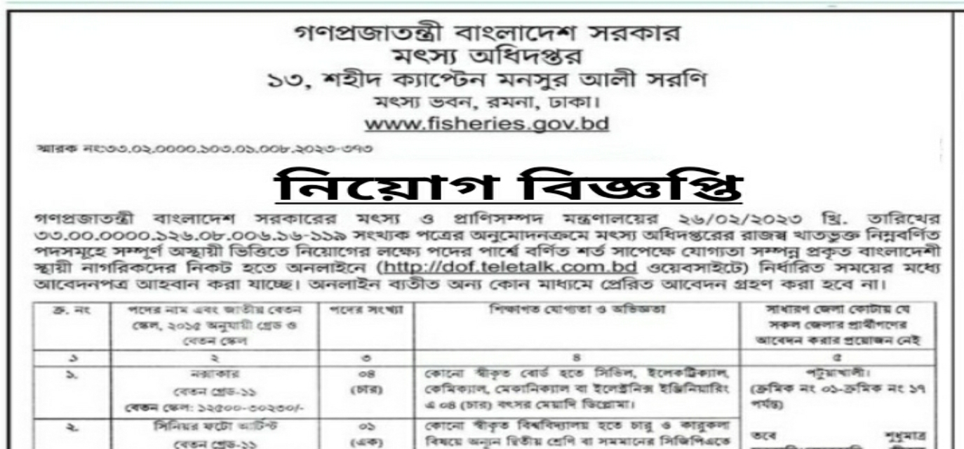 মৎস্য অধিদপ্তর নিয়োগ বিজ্ঞপ্তি ২০২৪