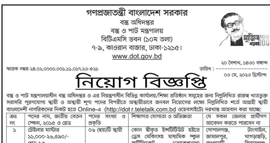 Read More »বস্ত্র অধিদপ্তর নিয়োগ বিজ্ঞপ্তি ২০২৩ | DOT Job Circular