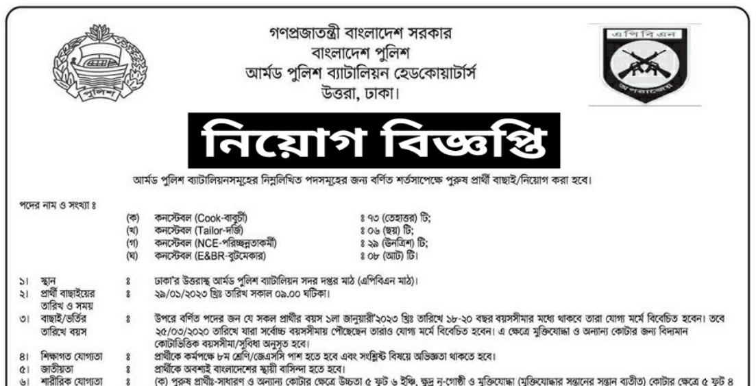 Read More »আর্মড পুলিশ ব্যাটালিয়ন হেডকোয়ার্টার্স নিয়োগ বিজ্ঞপ্তি ২০২৩ | APBN Job Circular