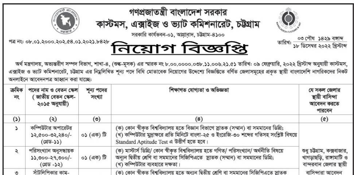 Read More »কাস্টমস এক্সাইজ ও ভ্যাট কমিশনারেট, চট্টগ্রাম নিয়োগ বিজ্ঞপ্তি ২০২৩ | CTGVAT Job Circular