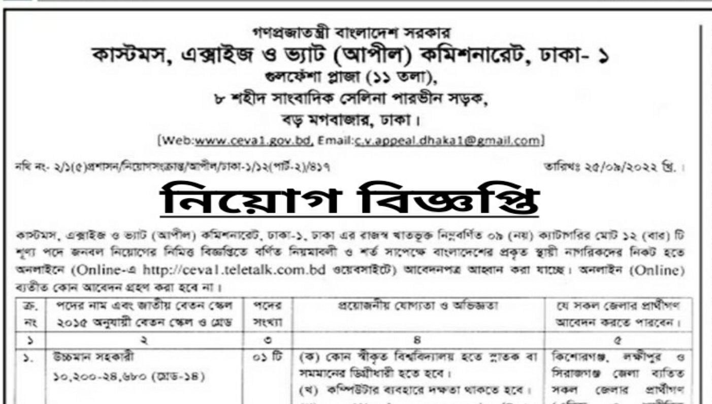 Read More »কাস্টমস এক্সাইজ ও ভ্যাট (আপীল) কমিশনারেট ঢাকা-১ নিয়োগ বিজ্ঞপ্তি ২০২২ | CEVA1 Job