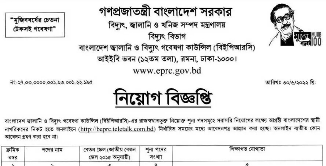 Read More »বাংলাদেশ জ্বালানি ও বিদ্যুৎ গবেষণা কাউন্সিল নিয়োগ বিজ্ঞপ্তি ২০২২ – BEPRC Job Circular