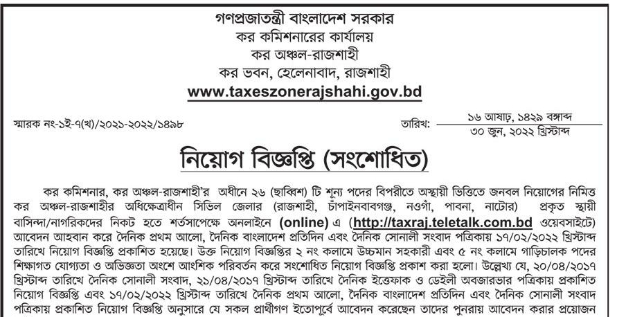 Read More »কর কমিশনারের কার্যালয় রাজশাহী নিয়োগ বিজ্ঞপ্তি ২০২২ – Tax Commissioner Rajshahi Job