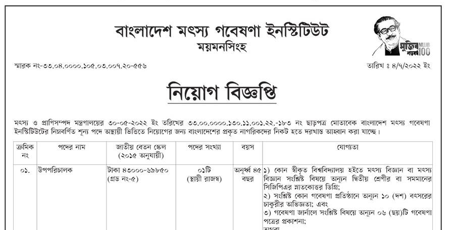 Read More »বাংলাদেশ মৎস্য গবেষণা ইনস্টিটিউট নিয়োগ বিজ্ঞপ্তি ২০২২ – FRI Job Circular