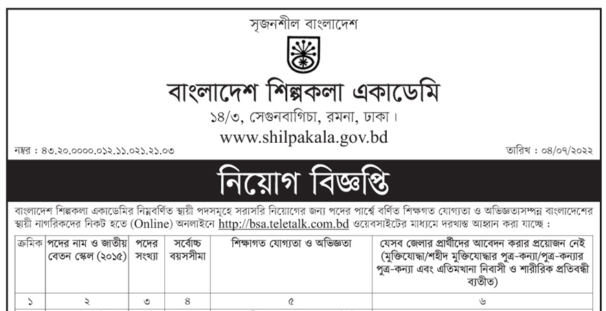 Read More »বাংলাদেশ শিল্পকলা একাডেমি নিয়োগ বিজ্ঞপ্তি ২০২২ – BSA Job Circular