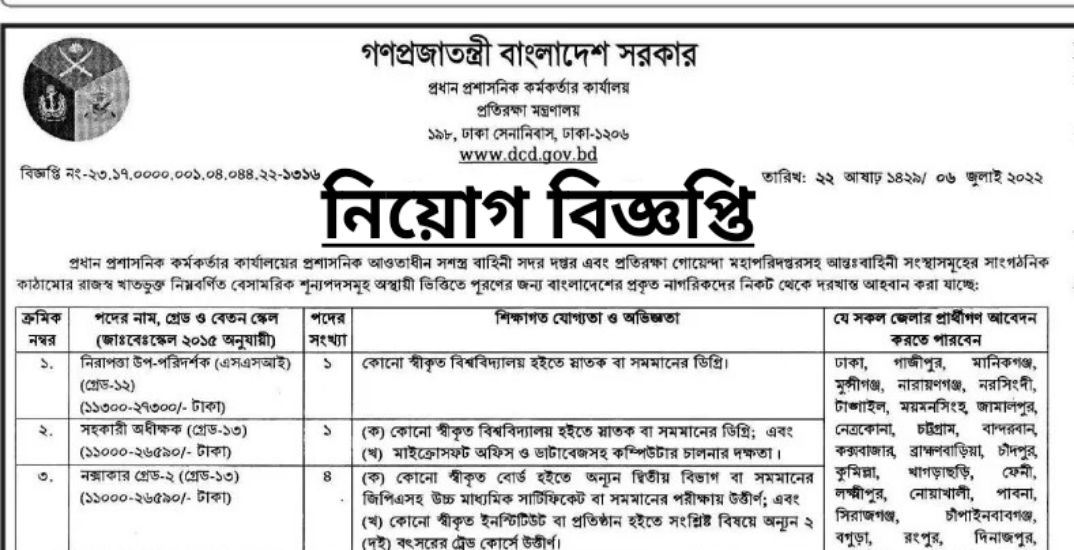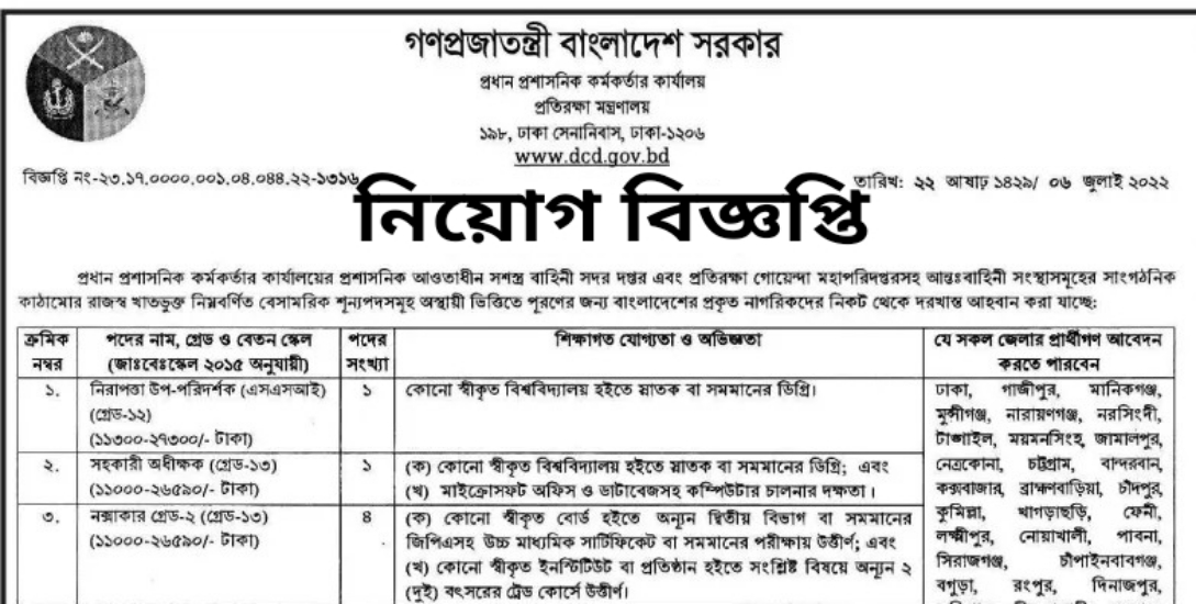 Read More »প্রধান প্রশাসনিক কর্মকর্তার কার্যালয় নিয়োগ বিজ্ঞপ্তি ২০২২ – DCD Job Circular