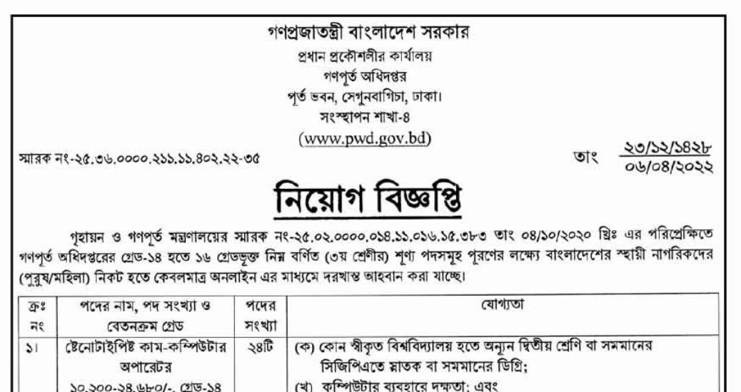Read More »গণপূর্ত অধিদপ্তর নিয়োগ বিজ্ঞপ্তি ২০২২ | PWD Job Circular