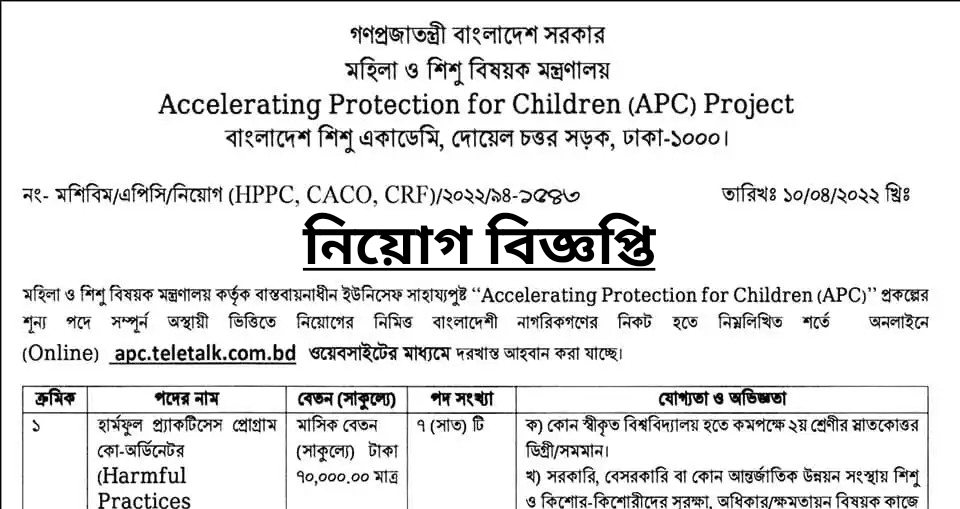 Read More »মহিলা ও শিশু বিষয়ক মন্ত্রণালয় নিয়োগ বিজ্ঞপ্তি ২০২২ | MOWCA Job