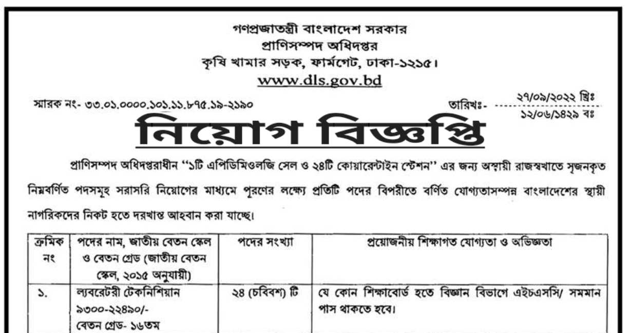 প্রাণিসম্পদ অধিদপ্তর নিয়োগ বিজ্ঞপ্তি ২০২৪ প্রাণিসম্পদ অধিদপ্তর নিয়োগ বিজ্ঞপ্তি ২০২৪ –Department of Livestock Services (DLS) Job Circular 2024: ৬৩৮ জনকে প্রাণিসম্পদ অধিদপ্তর নিয়োগ বিজ্ঞপ্তি প্রকাশ। প্রাণিসম্পদ অধিদপ্তরাধীন রাজস্বখাতভুক্ত নিম্নবর্ণিত শূন্য পদে নিয়োগের জন্য বাংলাদেশের প্রকৃত নাগরিকদের নিকট হতে অনলাইনে আবেদন আহবান করা যাচ্ছে। জেলা নাম উল্লেখিত জেলা প্রতিষ্ঠানের দাতা নাম …