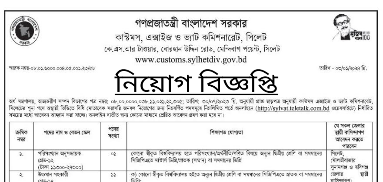 Read More »বাংলাদেশ কাস্টমস নিয়োগ বিজ্ঞপ্তি ২০২৪