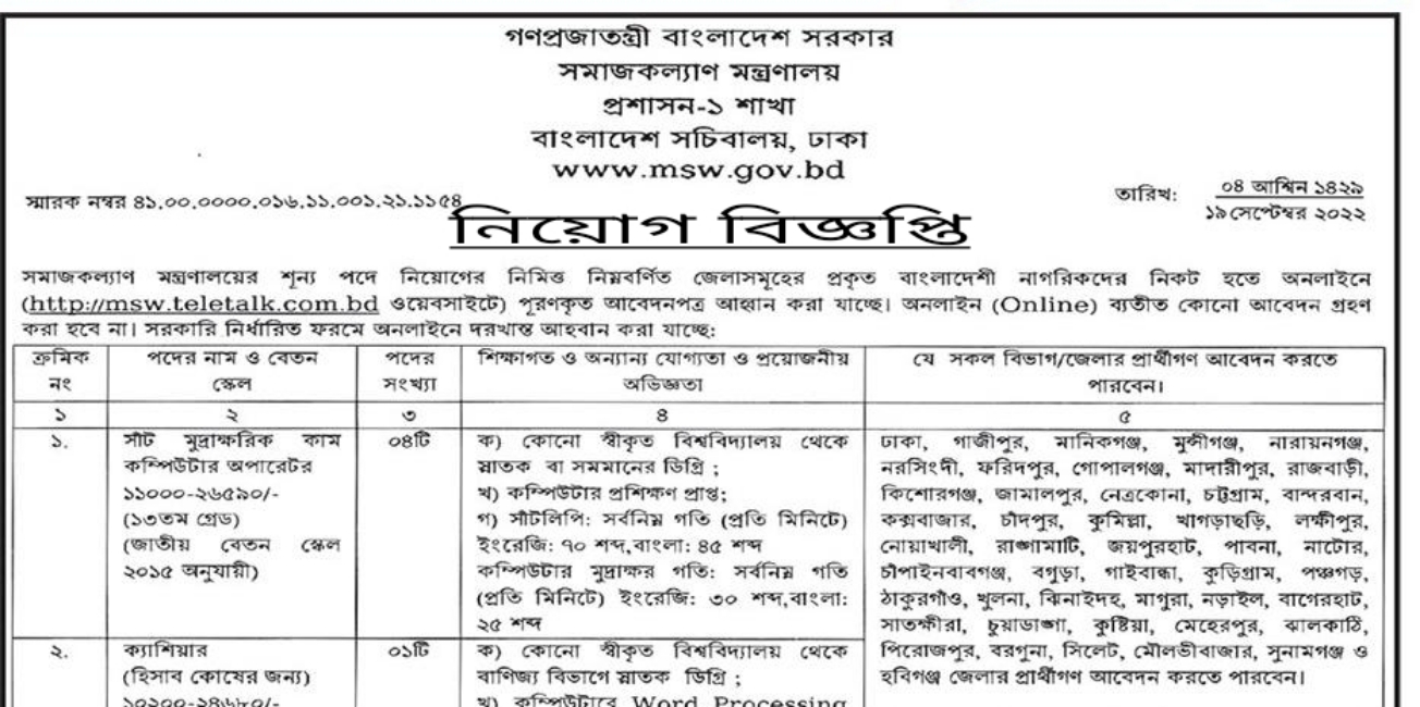 Read More »সমাজকল্যাণ মন্ত্রণালয় নিয়োগ বিজ্ঞপ্তি ২০২৪ | MSW Job Circular
