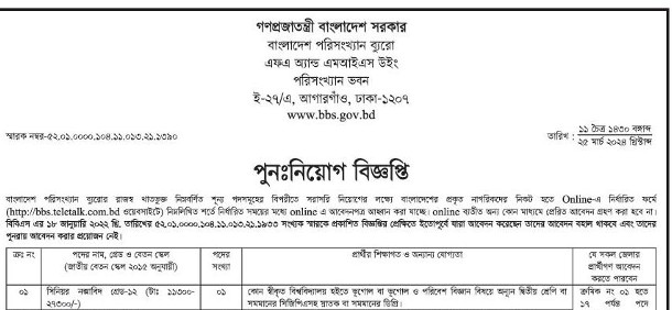 Read More »বাংলাদেশ পরিসংখ্যান ব্যুরো নিয়োগ বিজ্ঞপ্তি ২০২৪ | BBS Job Circular