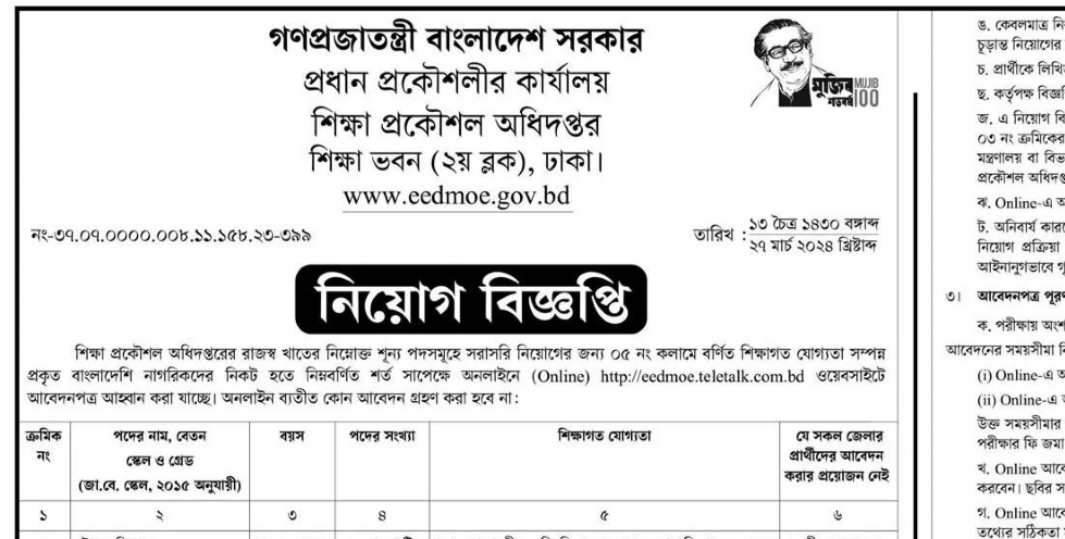Read More »শিক্ষা প্রকৌশল অধিদপ্তর নিয়োগ বিজ্ঞপ্তি ২০২৪ | EEDMOE Job Circular