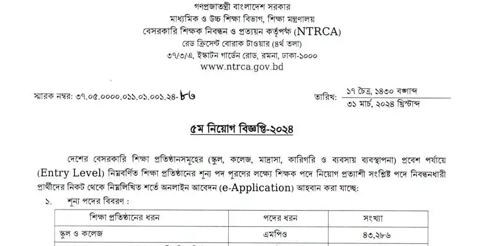 Read More »এনটিআরসিএ নিয়োগ বিজ্ঞপ্তি ২০২৪ | NTRCA Job Circular