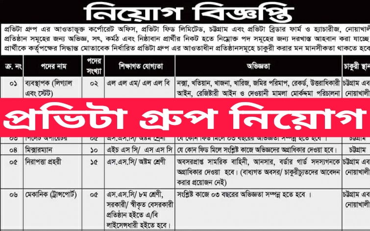 Read More »প্রভিটা গ্রুপ নিয়োগ বিজ্ঞপ্তি ২০২১ | Provita Group Job Circular