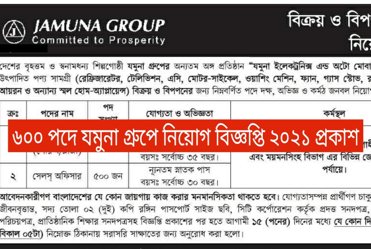 Read More »যমুনা গ্রুপে নিয়োগ বিজ্ঞপ্তি ২০২১ | Jamuna Group Job Circular