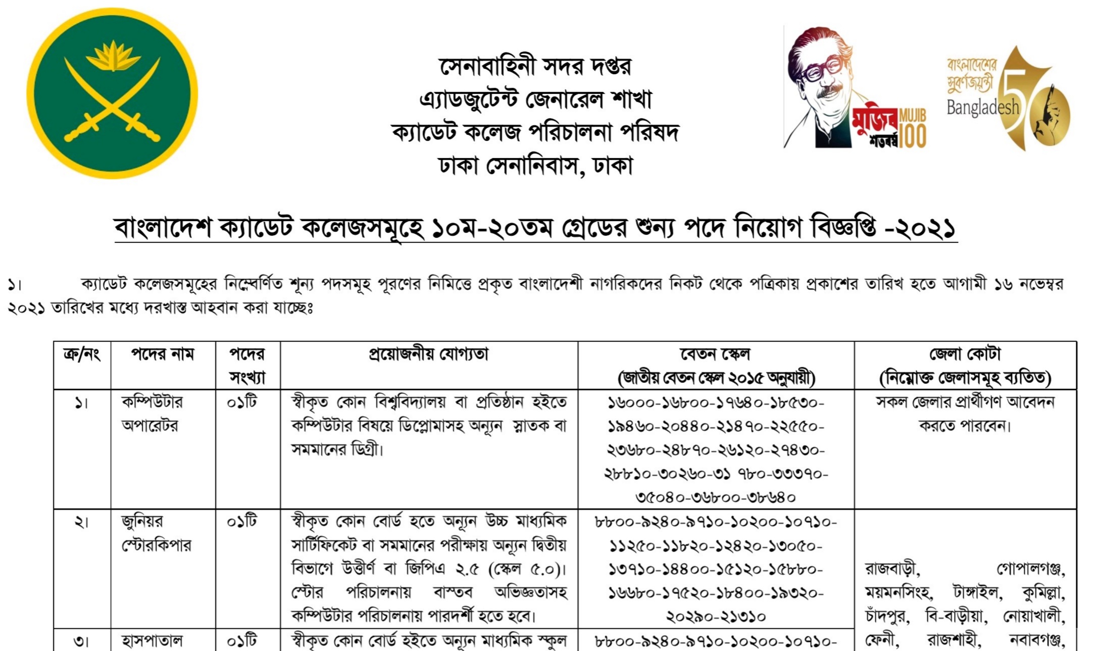 Read More »বাংলাদেশ ক্যাডেট কলেজসমূহ নিয়োগ বিজ্ঞপ্তি ২০২১ | Cadet College Job
