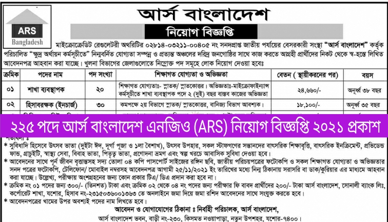 Read More »আর্স বাংলাদেশ এনজিও নিয়োগ বিজ্ঞপ্তি ২০২১ | ARS Bangladesh NGO Job