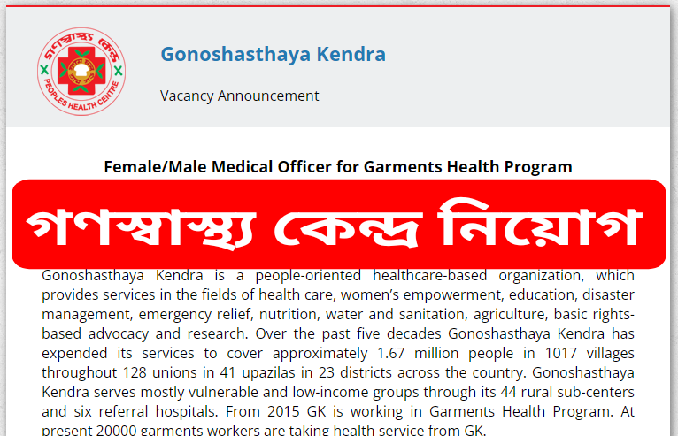Read More »গণস্বাস্থ্য কেন্দ্র নিয়োগ বিজ্ঞপ্তি ২০২১ | Gonoshasthaya Kendra Job