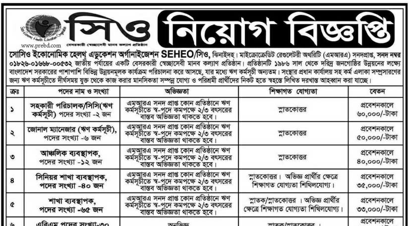 সিও এনজিও নিয়োগ বিজ্ঞপ্তি ২০২২ঃ সোসিও ইকোনোমিক হেলথ্ এডুকেশন অর্গানাইজেশন SEHEO/সিও, ঝিনাইদহ। মাইক্রোক্রেডিট রেগুলেটরী অথরিটি (এমআরএ) সনদপ্রাপ্ত, সনদ নম্বর ০১৮২৬- ০১৬৬৮-০০৫৩২ জাতীয় পর্যায়ের একটি বেসরকারী স্বেচ্ছাসেবী মানব কল্যাণ প্রতিষ্ঠান। প্রতিষ্ঠানটি ১৯৮৬ সাল থেকে দরিদ্র জনগোষ্ঠির উন্নয়নের লক্ষ্যে বাংলাদেশ সরকারের পাশাপাশি বিভিন্ন উন্নয়নমূলক কার্যক্রম পরিচালনা করে আসছে, যার মধ্যে ঋণ কর্মসূচী …