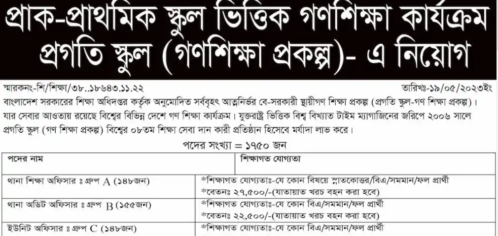 Read More »প্রগতি স্কুল নিয়োগ বিজ্ঞপ্তি ২০২৩ | (শূন্যপদ ১৭৫০টি)