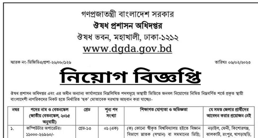 ওষুধ প্রশাসন অধিদপ্তরের জব সার্কুলার