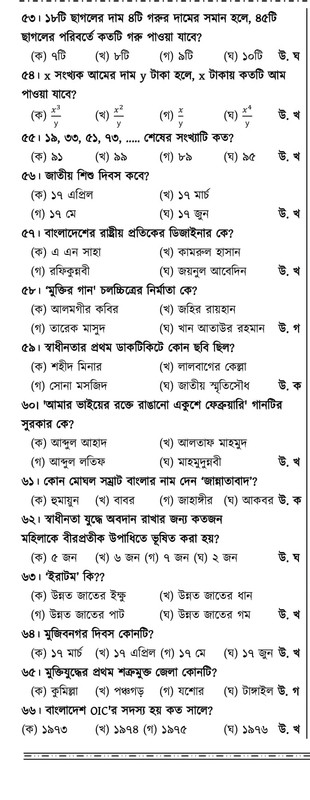 ৬৬। বাংলাদেশের স্বাধীনতার সুবর্ণজয়ন্তী বছর কোনটি? উত্তর: ২০২১