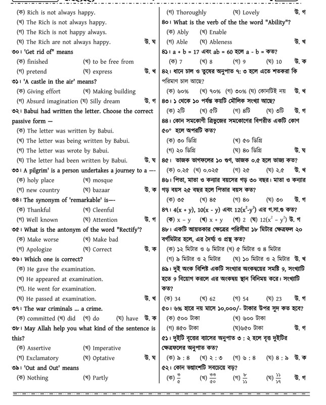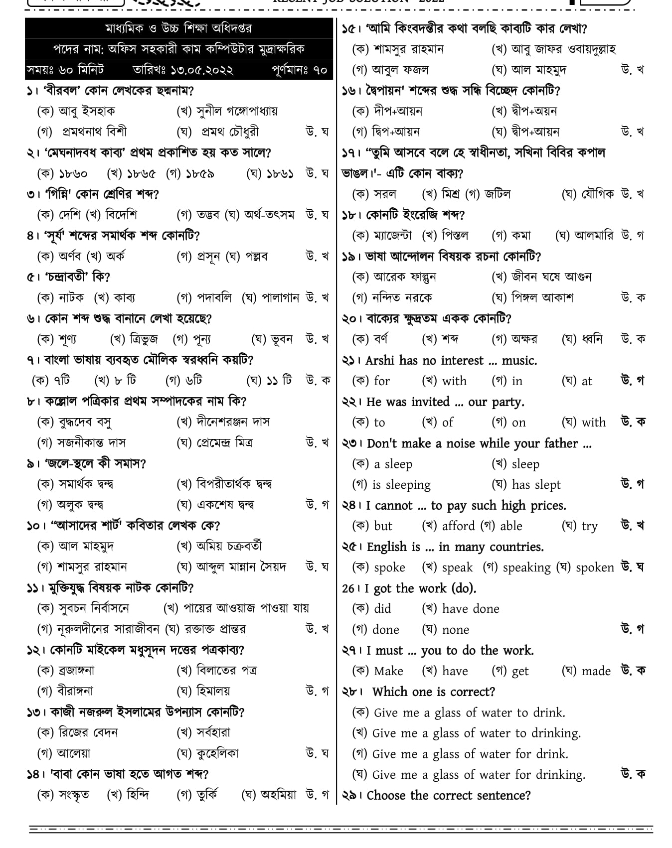 মাধ্যমিক ও উচ্চ শিক্ষা অধিদপ্তরের নিয়োগ পরীক্ষার প্রশ্নের সমাধান ২০২২