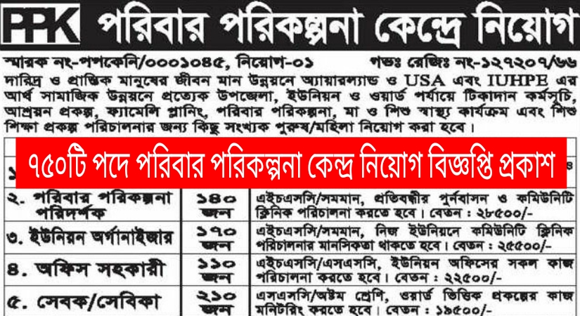 পরিবার পরিকল্পনা কেন্দ্র নিয়োগ বিজ্ঞপ্তি