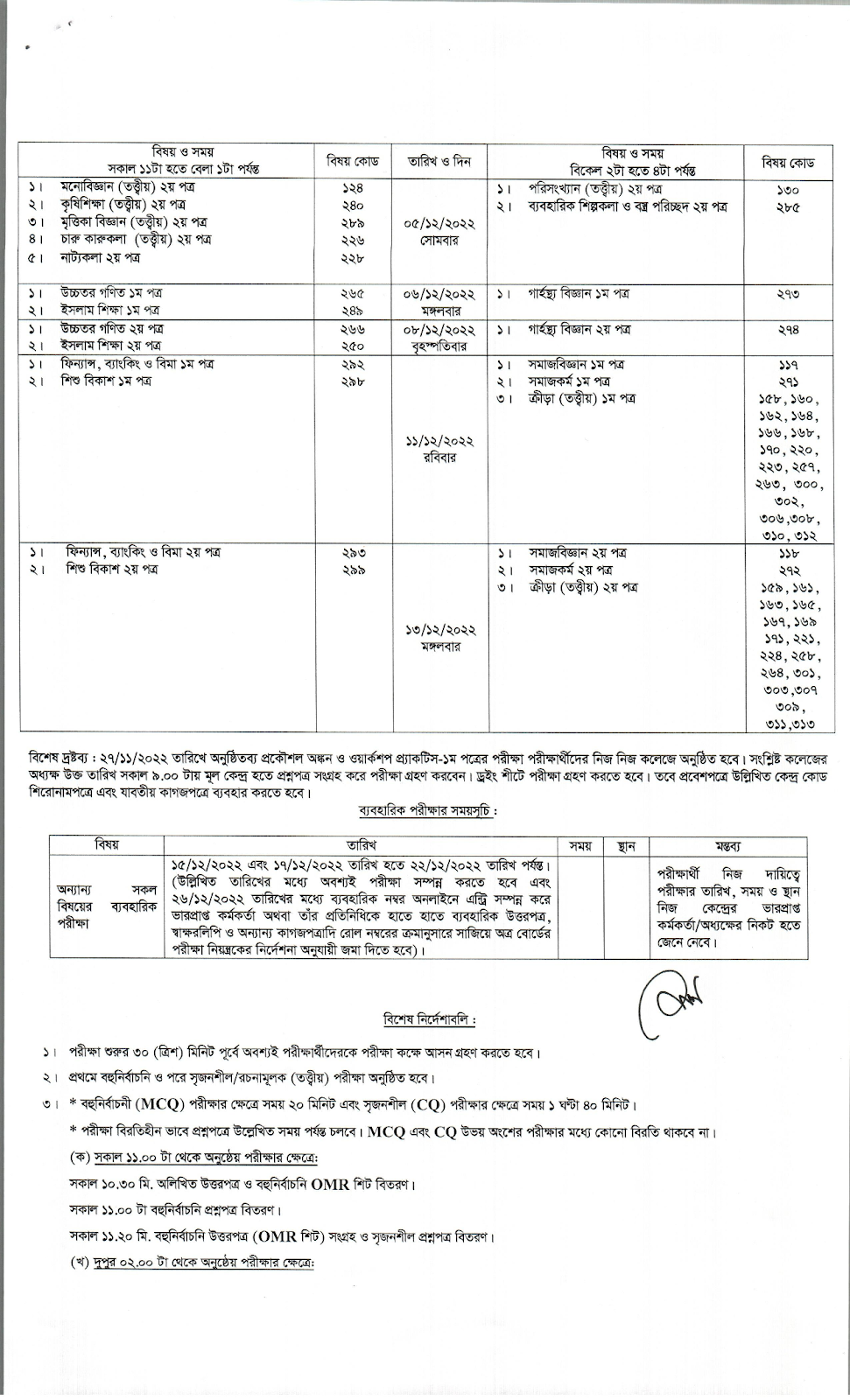 - রুটিন প্রকাশের তারিখ: ১২ সেপ্টেম্বর, ২০২২