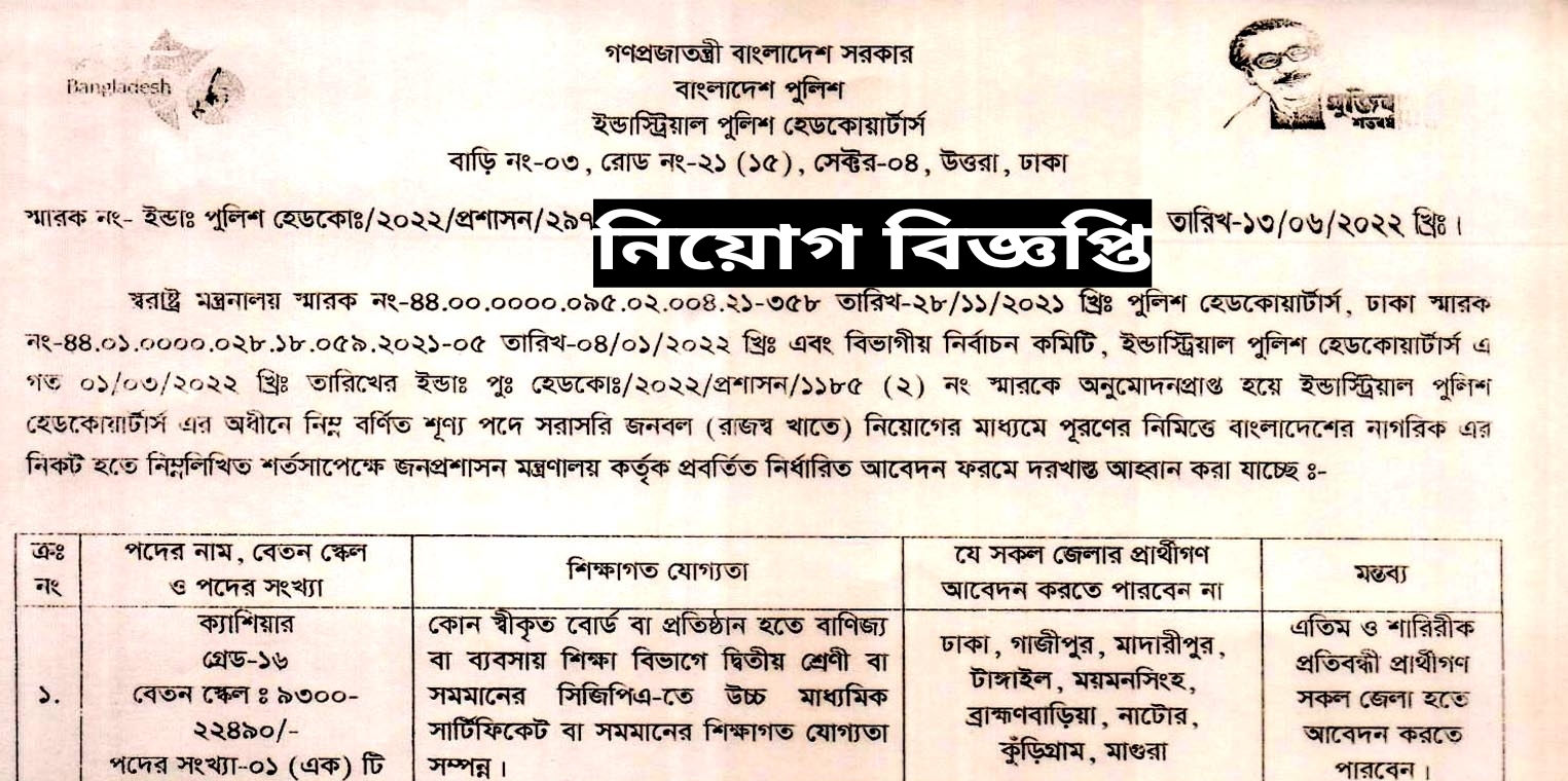 ইন্ডাস্ট্রিয়াল পুলিশ হেডকোয়ার্টার্স নিয়োগ বিজ্ঞপ্তি