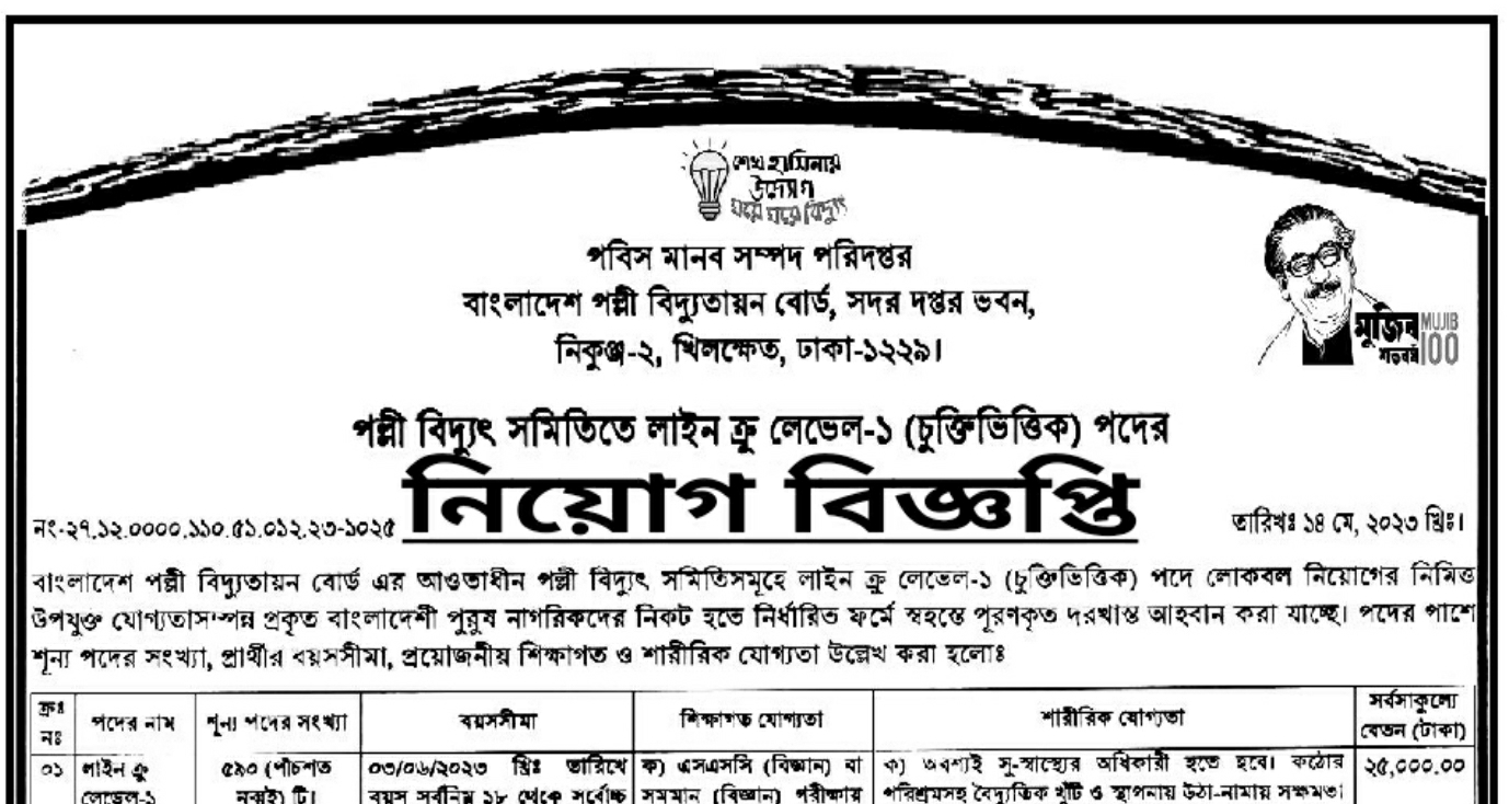 পল্লী বিদ্যুৎ সমিতি নিয়োগ বিজ্ঞপ্তি