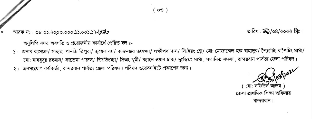 | আবেদন ঠিকানা | বরাবর, চেয়ারম্যান বান্দরবান পার্বত্য জেলা পরিষদ |