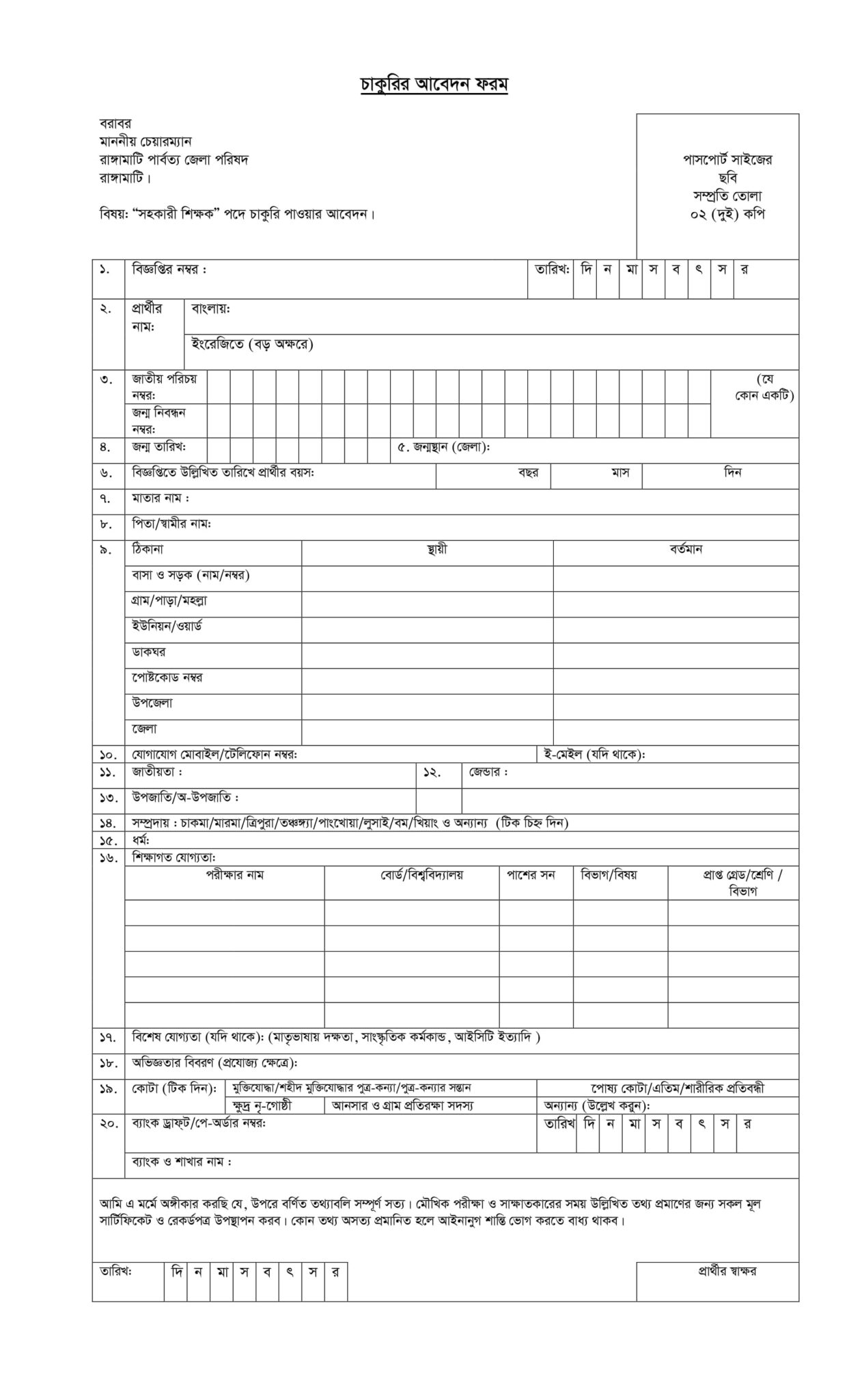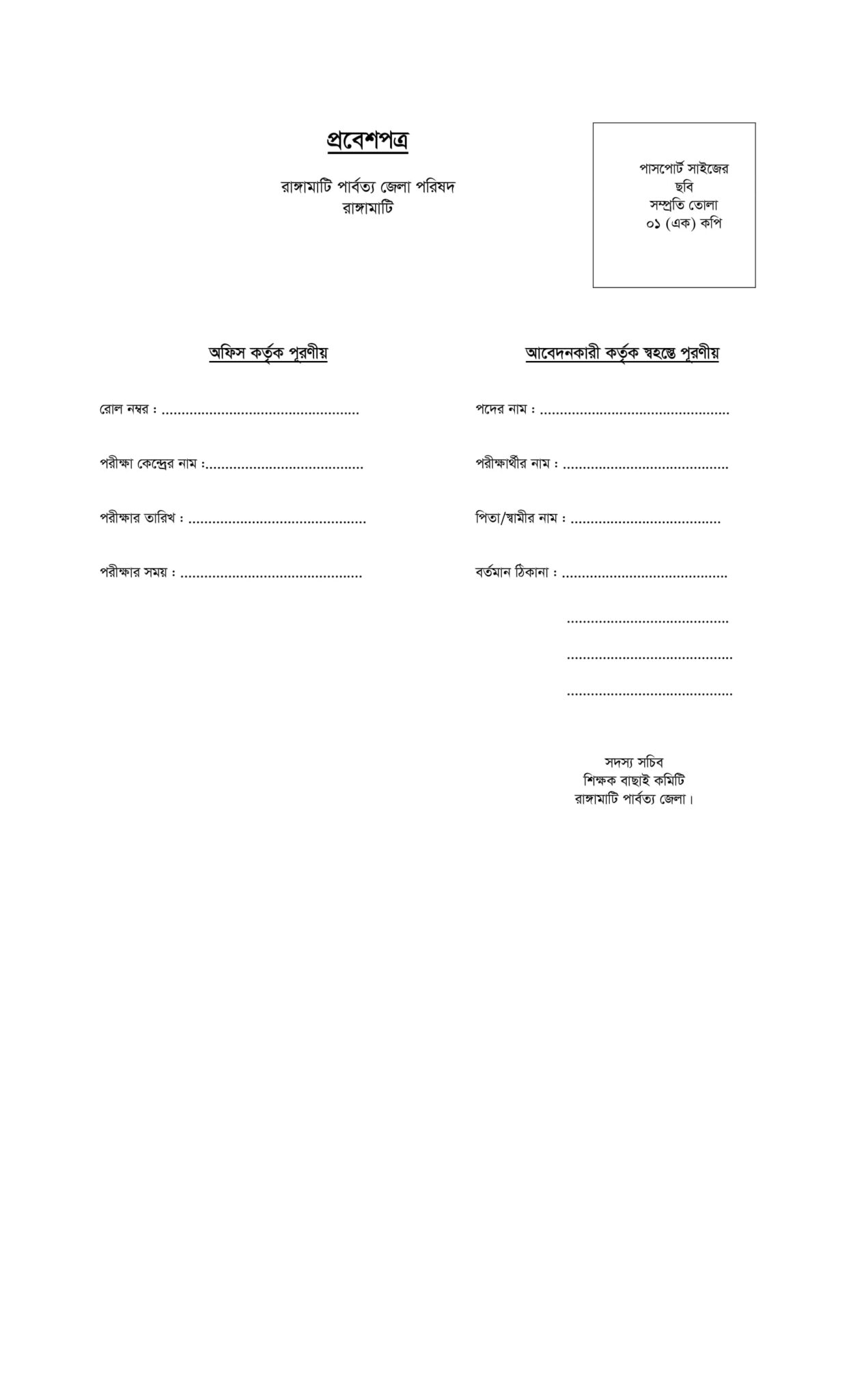 | আবেদন ঠিকানা | বরাবর, চেয়ারম্যান রাঙ্গামাটি পার্বত্য জেলা পরিষদ |
