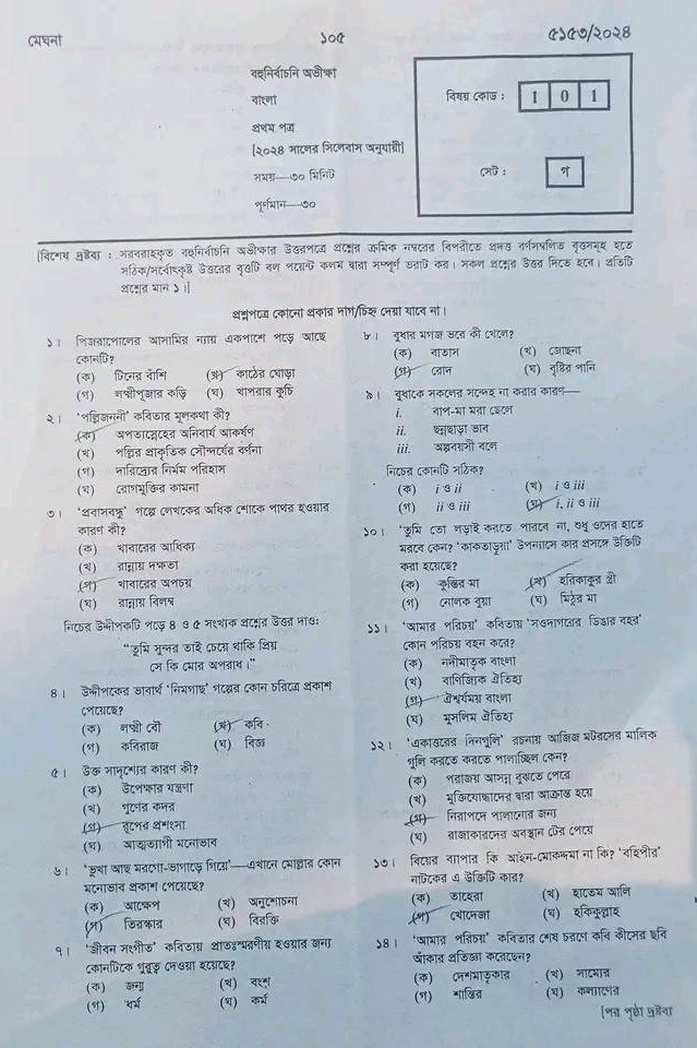 এসএসসি বাংলা ১ম পত্র বহুনির্বাচনি/MCQ প্রশ্ন সমাধান